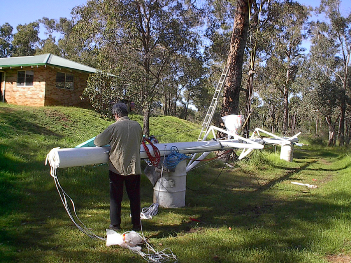 Ray and Mast. Getting it ready to transport to the Marina - one week to launch.